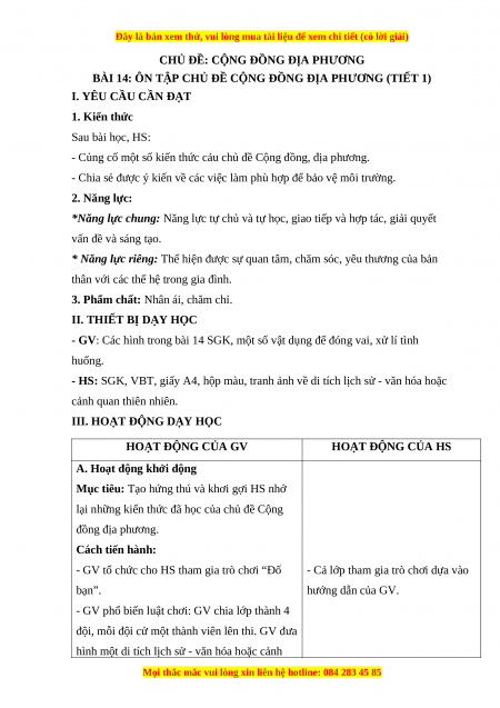 BÀI 14: ÔN TẬP CHỦ ĐỀ CỘNG ĐỒNG ĐỊA PHƯƠNG (TIẾT 1)