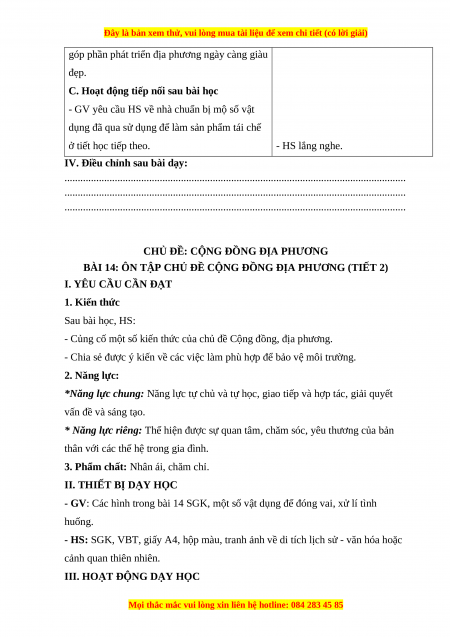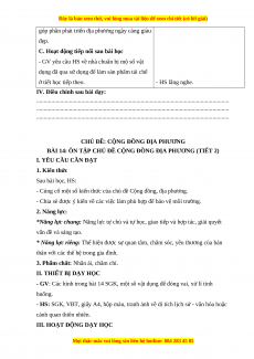 BÀI 14: ÔN TẬP CHỦ ĐỀ CỘNG ĐỒNG ĐỊA PHƯƠNG (TIẾT 2)