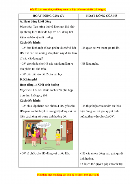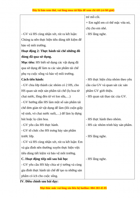 kiệm và bảo vệ môi trường. Cách tiến hành: