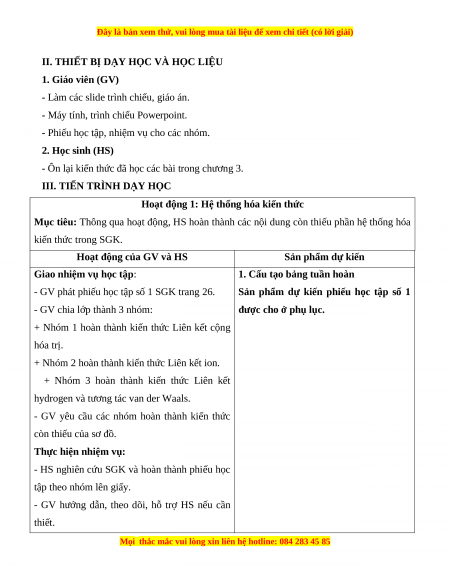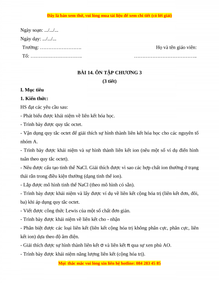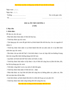 Giáo án Bài 14: Ôn tập chương 3 Hóa học 10 Kết nối tri thức