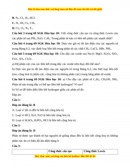 Câu hỏi 2 trang 69 SGK Hóa học 10: Dãy các chất nào dưới đây mà tất cả các phân tử