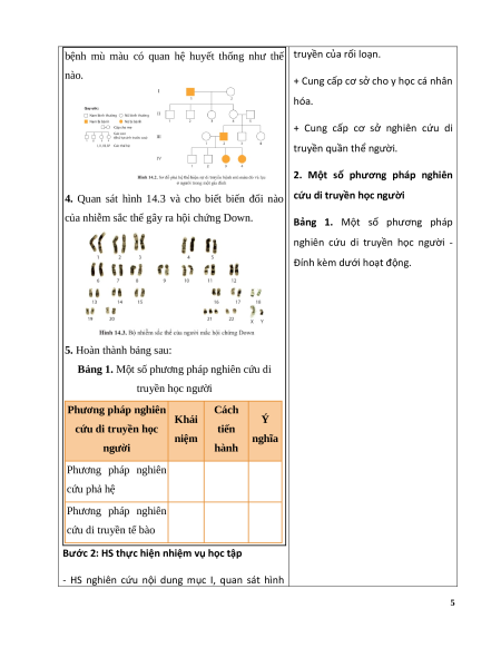 Giáo án Bài 14 Sinh học 12 Cánh diều: Di truyền học người