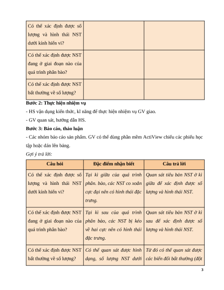 kế hoạch về cách làm tiêu bản NST, cách sử dụng kính hiển vi.