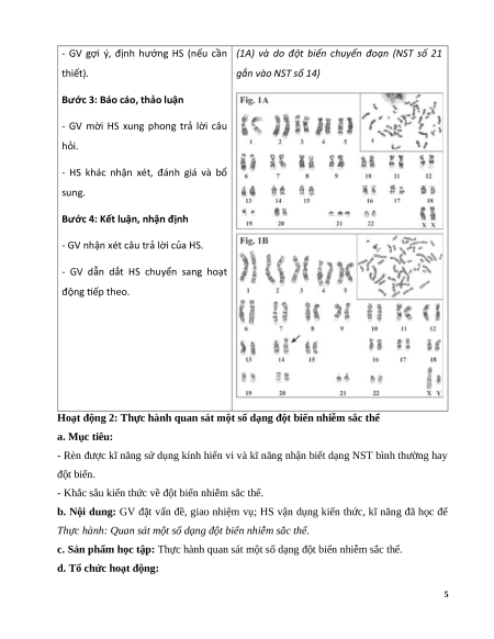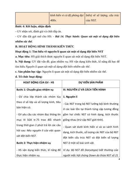 - Năng lực nhận thức sinh học: Thực hành, quan sát được đột biến NST trên tiêu
