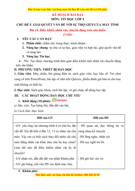 Đây là bản xem thử, vui lòng mua tài liệu để xem chi tiết (có lời giải) KẾ HOẠCH BÀI DẠY MÔN: TIN HỌC LỚP 4