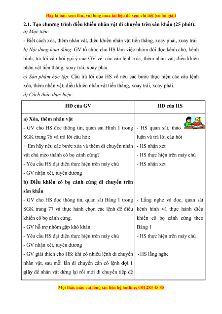 2.1. Tạo chương trình điều khiển nhân vật di chuyển trên sân khấu (25 phút): a) Mục tiêu: