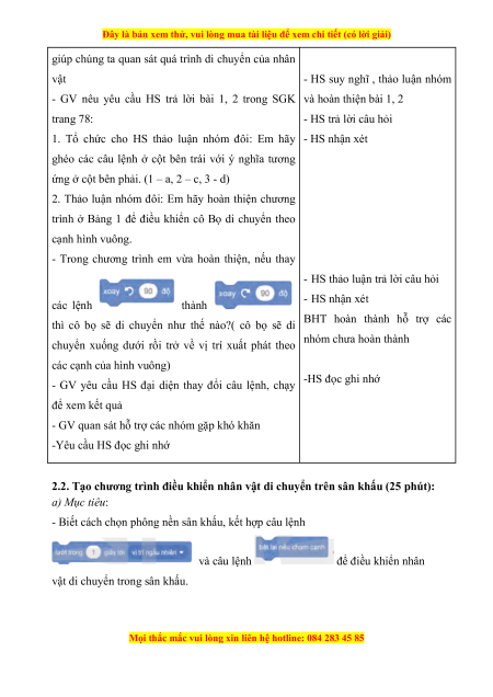 2.2. Tạo chương trình điều khiển nhân vật di chuyển trên sân khấu (25 phút): a) Mục tiêu: