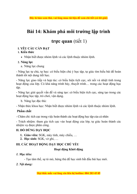 Bài 14: Khám phá môi trường lập trình trực quan (tiết 1) I. YÊU CẦU CẦN ĐẠT 1. Kiến thức