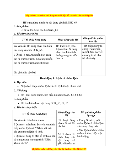 Đây là bản xem thử, vui lòng mua tài liệu để xem chi tiết (có lời giải) Hoạt động của Kết quả/sản phẩm GV tổ chức hoạt động HS học tập