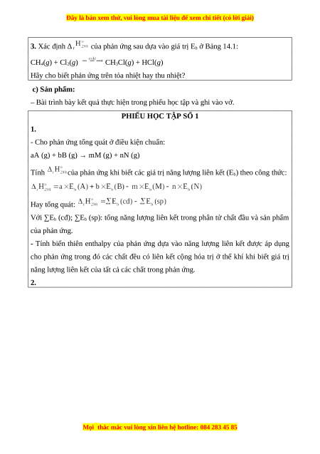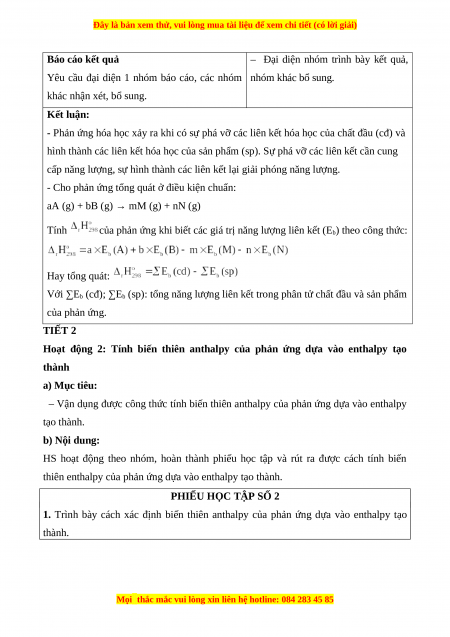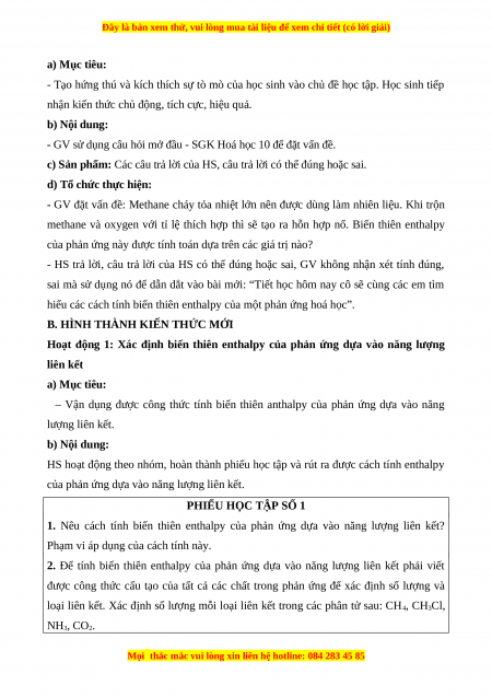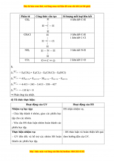 – Vận dụng được công thức tính biến thiên anthalpy của phản ứng dựa vào năng lượng liên kết. b) Nội dung: