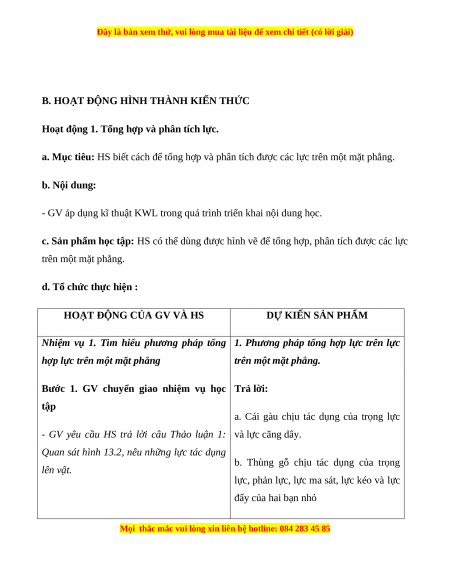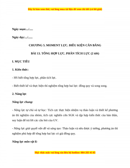 BÀI 13. TỔNG HỢP LỰC. PHÂN TÍCH LỰC (2 tiết) I. MỤC TIÊU 1. Kiến thức: