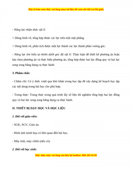 - Biết thiết kế và thực hiện thí nghiệm tổng hợp hai lực: đồng quy và song song. 2. Năng lực