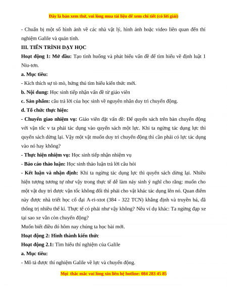 - Mô tả được thí nghiệm Galile về lực và chuyển động.