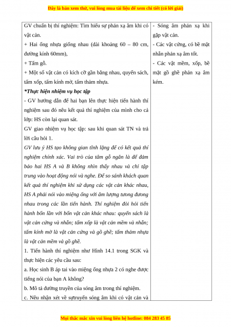 - Năng lực nhận biết KHTN: Hiểu được sóng âm khi gặp vật cản đều phản xạ ít