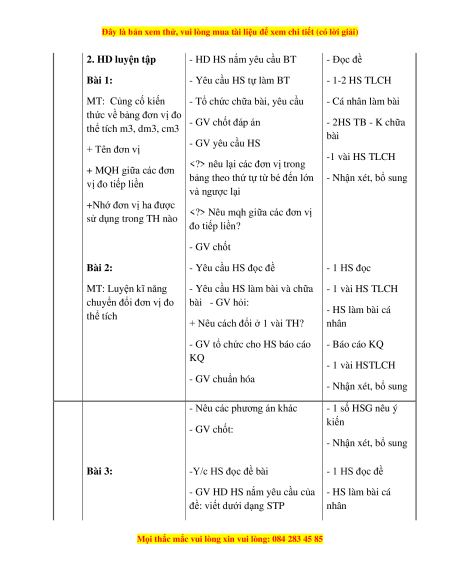 chuyển đổi đơn vị đo bài - GV hỏi: - HS làm bài cá thể tích