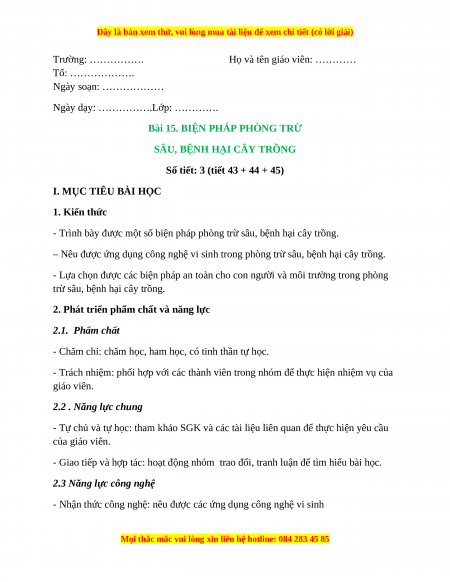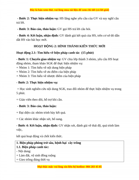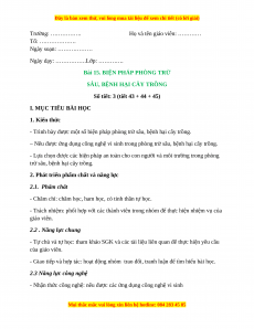 Giáo án Bài 15: Biện pháp phòng trừ sâu bệnh hại cây trồng Công nghệ 10 Cánh diều