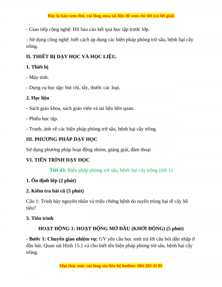 Tiết 43: Biện pháp phòng trừ sâu, bệnh hại cây trồng (tiết 1)