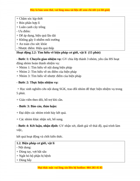 Hoạt động 2.2: Tìm hiểu về biện pháp cơ giới, vật lí (15 phút)