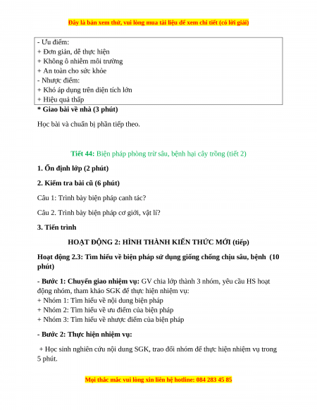 Tiết 44: Biện pháp phòng trừ sâu, bệnh hại cây trồng (tiết 2)