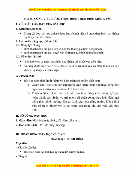 BÀI 15: CÔNG VIỆC ĐƯỢC THỰC HIỆN THEO ĐIỀU KIỆN (2 tiết )