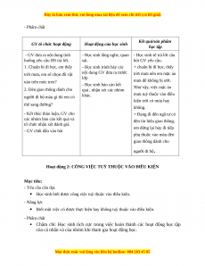 Hoạt động 2: CÔNG VIỆC TUỲ THUỘC VÀO ĐIỀU KIỆN Mục tiêu: - Yêu cầu cần đạt.