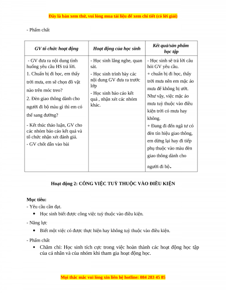 Hoạt động 2: CÔNG VIỆC TUỲ THUỘC VÀO ĐIỀU KIỆN