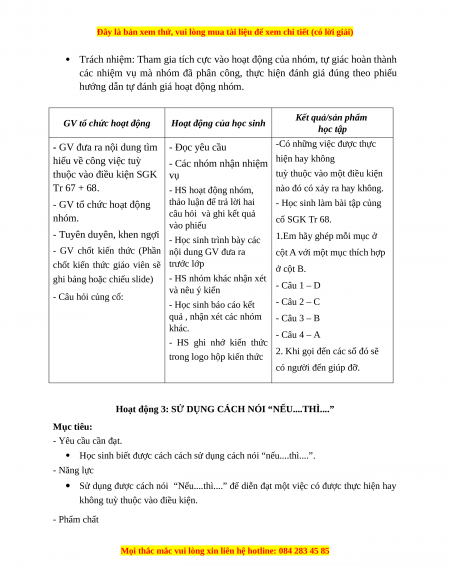 Hoạt động 3: SỬ DỤNG CÁCH NÓI “NẾU....THÌ....” Mục tiêu: - Yêu cầu cần đạt.