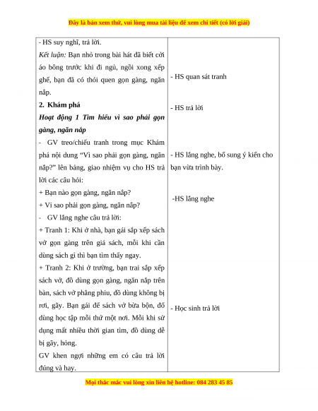 ghế, bạn đã có thói quen gọn gàng, ngăn - HS quan sát tranh nắp. 2. Khám phá - HS trả lời