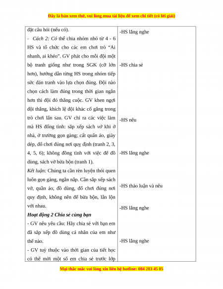 4, 5, 6); không đồng tình với việc để đồ -HS lắng nghe