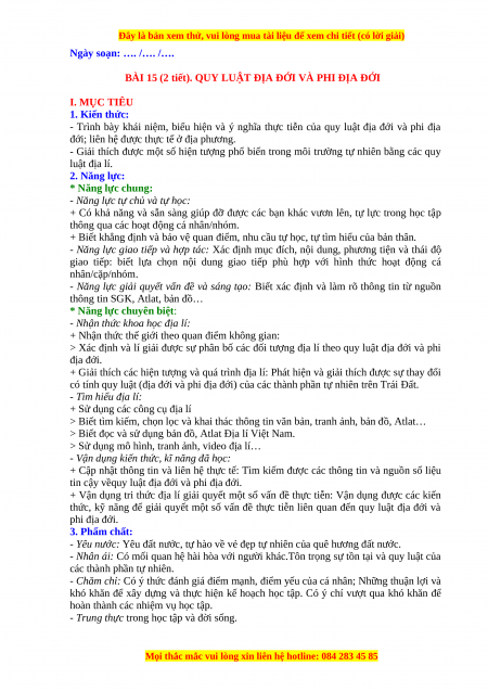 BÀI 15 (2 tiết). QUY LUẬT ĐỊA ĐỚI VÀ PHI ĐỊA ĐỚI I. MỤC TIÊU 1. Kiến thức: