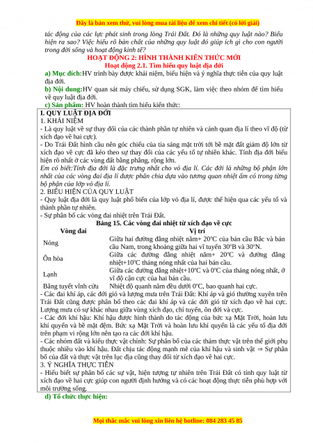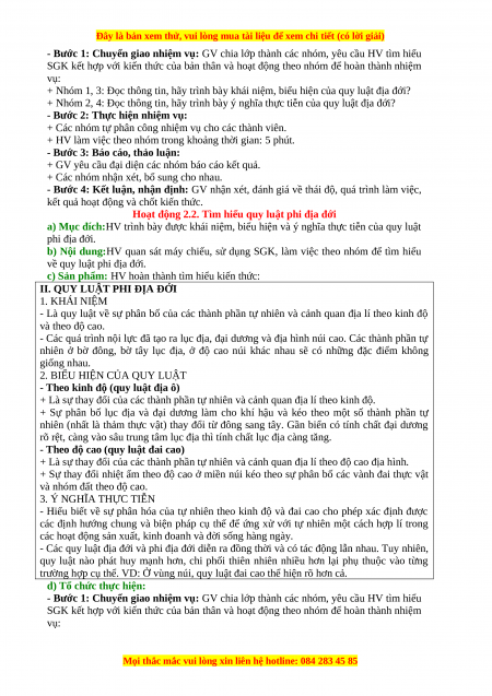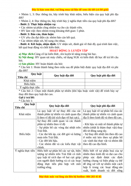 thức, kỹ năng để giải quyết một số vấn đề thực tiễn liên quan đến quy luật địa đới và phi địa đới. 3. Phẩm chất: