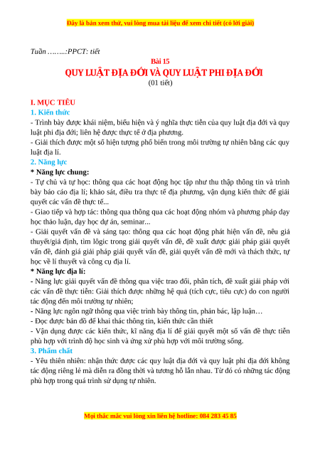 Tuần ……..:PPCT: tiết Bài 15 QUY LU T Ậ Đ A Ị Đ I Ớ VÀ QUY LU T Ậ PHI Đ A Ị Đ I Ớ (01 tiết) I. MỤC TIÊU 1. Kiến thức