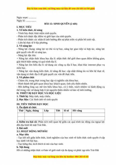 - Tạo kết nối giữa kiến thức, kinh nghiệm của học sinh về kiến thức sinh quyển ở cấp
