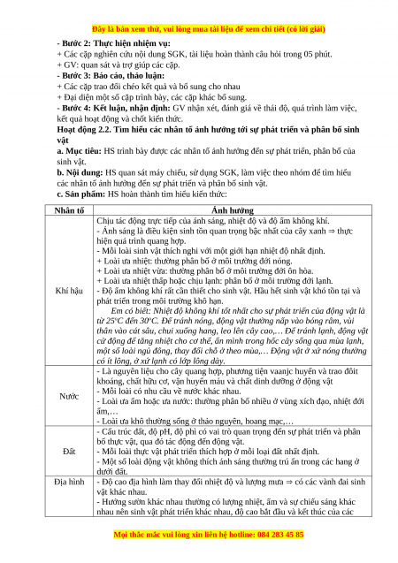 Hoạt động 2.2. Tìm hiểu các nhân tố ảnh hưởng tới sự phát triển và phân bố sinh