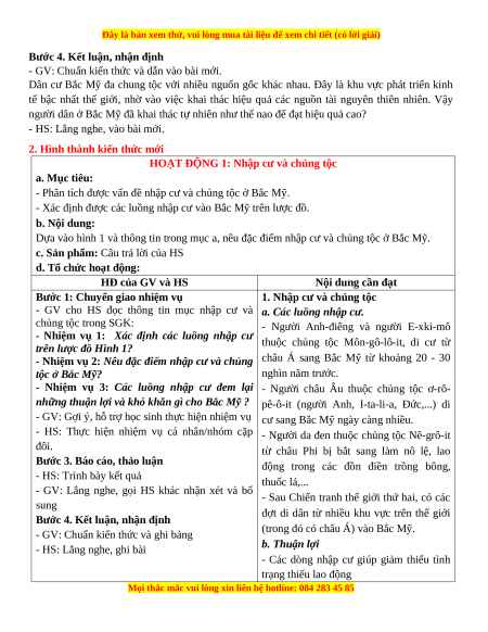 - Xác định được các luồng nhập cư vào Bắc Mỹ trên lược đồ. b. Nội dung: