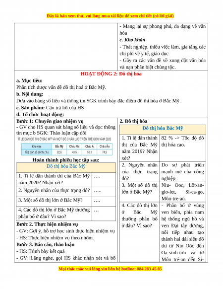 Phân tích được vấn đề đô thị hoá ở Bắc Mỹ. b. Nội dung: