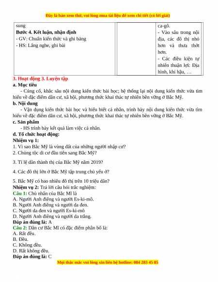 - Có nhận thức đúng dấn về các vấn đề dân cư, xã hội ở Bắc Mỹ.