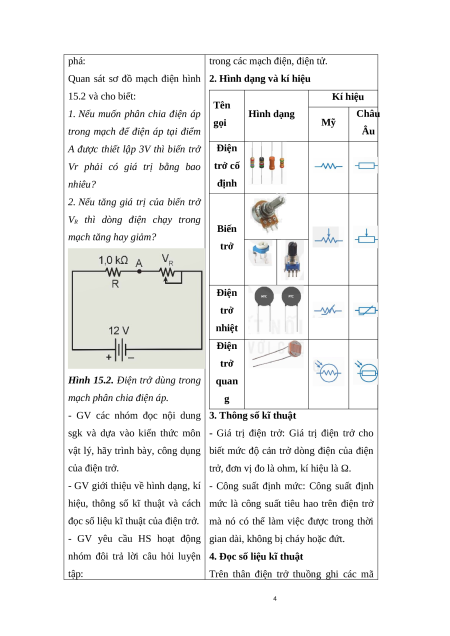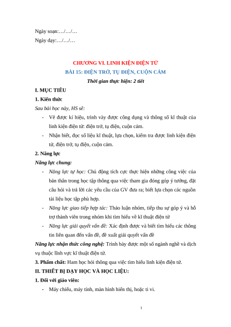 Giáo án Bài 15: Điện trở, tụ điện và cuộn cảm Công nghệ 12 Kết nối tri thức