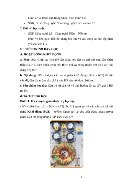 tử, điện trở, tụ điện, cuộn cảm. 2. Năng lực