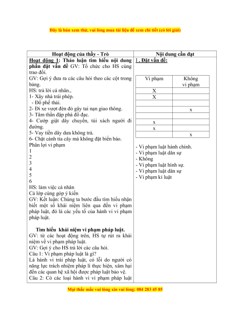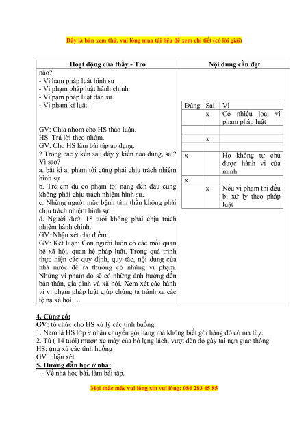 - Vi phạm luật hình sự. 4 - Vi phạm luật dân sự 5 - Vi phạm kỉ luật 6 HS: làm việc cá nhân