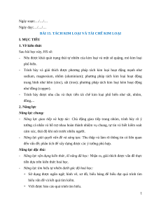 BÀI 15. TÁCH KIM LOẠI VÀ TÁI CHẾ KIM LOẠI I. MỤC TIÊU 1. Về kiến thức Sau bài học này, HS sẽ: