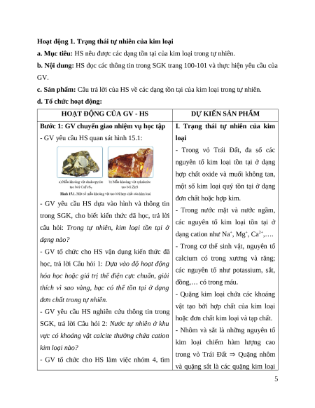 - Nêu được khái quát trạng thái tự nhiên của kim loại và một số quặng, mỏ kim loại phổ biến.
