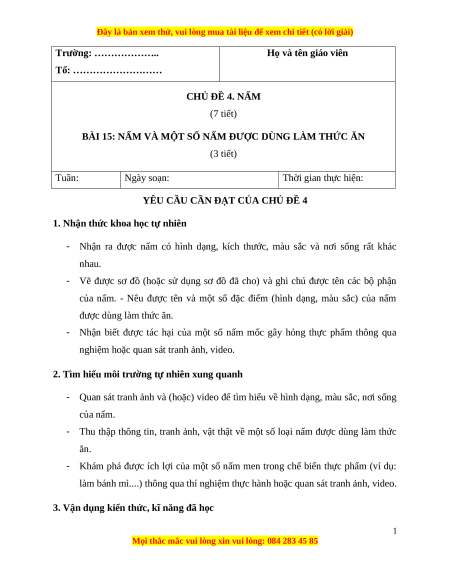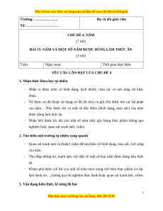 Tổ: ……………………… CHỦ ĐỀ 4. NẤM (7 tiết)