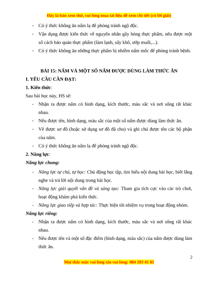 - Có ý thức không ăn nấm lạ để phòng tránh ngộ độc. 2. Năng lực:
