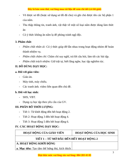 - Tiết 1: Từ khởi động đến hết hoạt động 2.