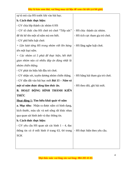 Giáo án Bài 15 Khoa học lớp 4 (Cánh diều): Nấm và một số nấm được dùng làm thức ăn