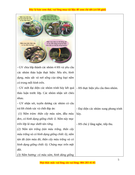 - Quan sát tranh ảnh và (hoặc) video để tìm hiểu về hình dạng, màu sắc, nơi sống của nấm.