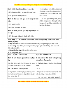 GV chia nhóm, yêu cầu HS quan sát hình 1. Carbohydrate: Nguồn năng lượng