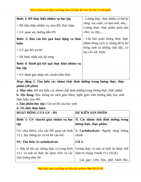 a. Mục tiêu: HS tìm hiểu các nhóm chất dinh dưỡng trong lương thực, thực phẩm