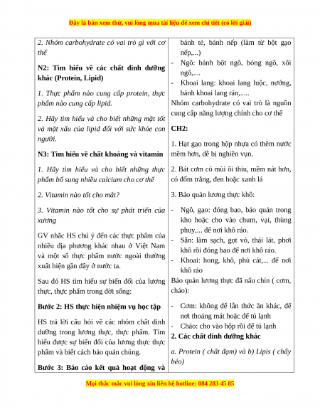 N2: Tìm hiểu về các chất dinh dưỡng ngô,.... khác (Protein, Lipid)